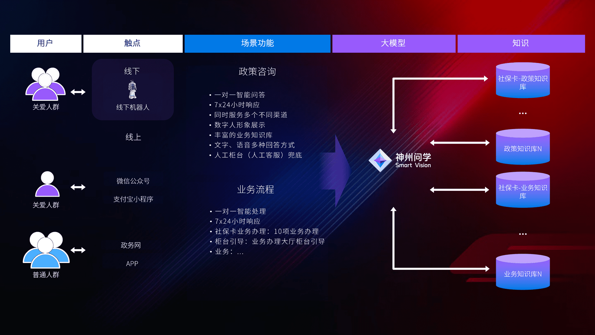 • 线上线下全覆盖:线上提供微信公众号、、、、支付宝小程序、、、政务网、、、、app多种渠道,,与线下机器人形成完整服务体系。。。